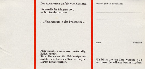 1973年ザルツブルク聖霊降臨祭音楽祭、公演の予約申込用紙(2007.9.8.入手)。