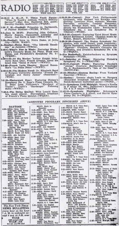 1958年11月22日 The New York Times 記事2(ラジオ番組)