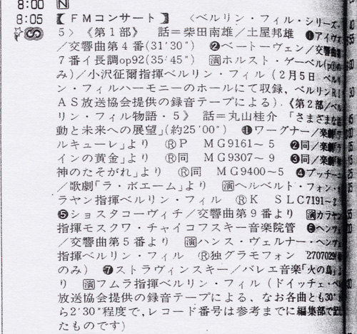 NHK-FMで、1975年11月26日(水)の20:05〜22:00に「FMコンサート/ベルリン・フィル・シリーズ5」の