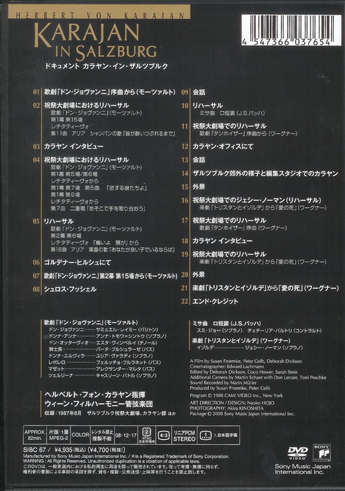 2008年5月21日リリースの「カラヤンの遺産 コンプリートDVD-BOX 」(40DVD, SIBC-69〜110)付属の解説書に佐々木豊氏制作「ヘルベルト・フォン・カラヤン演奏会記録」が掲載されています。 記載ページを「KL解説書p***」とします。