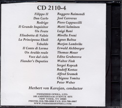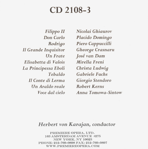Philipp IIの役は当初Jose van Damが予定されていたが、急病のためFerrccio Furlanettoに変更された。
