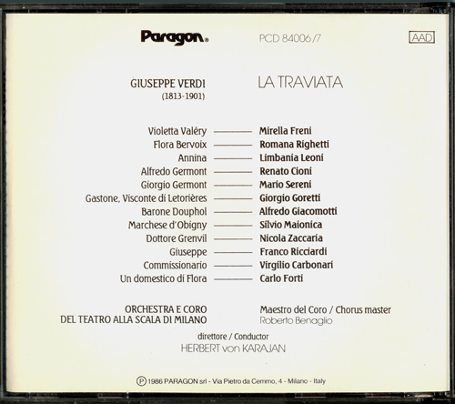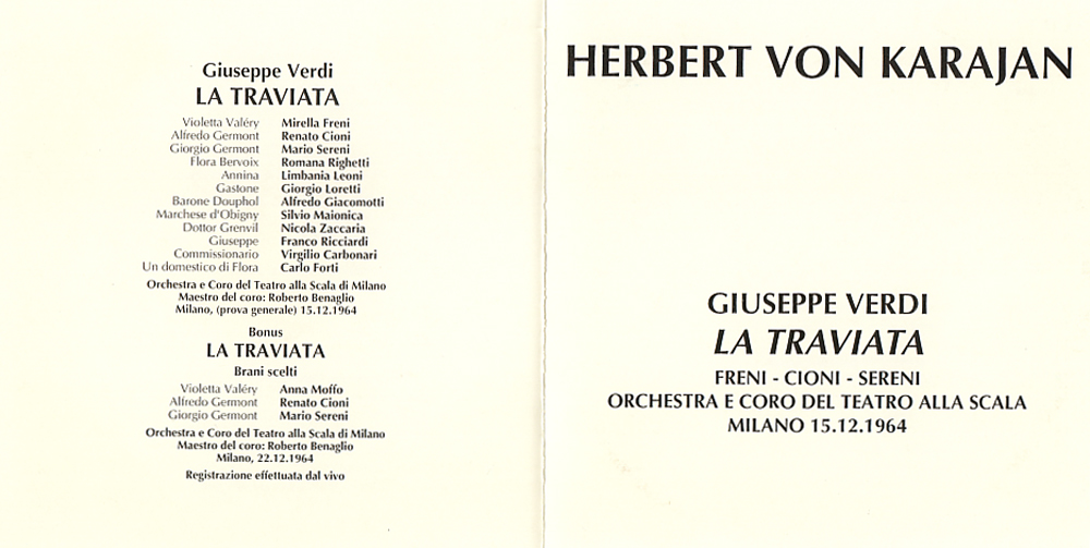 Eliette und Herbert von Karajan Institutでヴェルディの歌劇「ラ・トラヴィアータ」を検索すると12件検索されます(2011.1.22.)。これをKI1-KI12(新しい演奏会から表示)とします。
