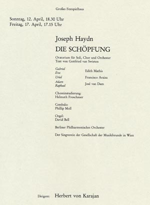 12 and 17 April:Haydn's die Schoepfung