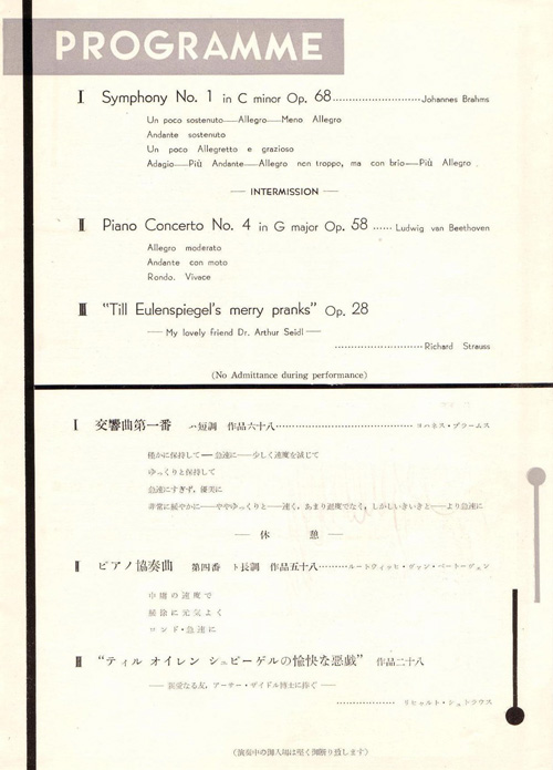 Concert programme of NHK Symphony Orchestra