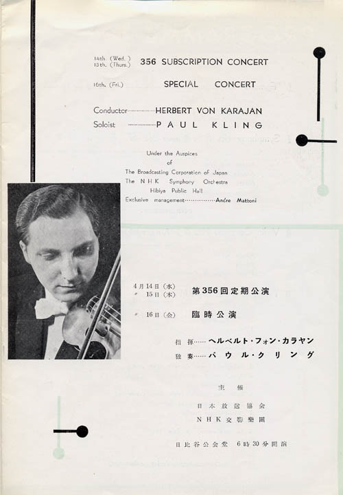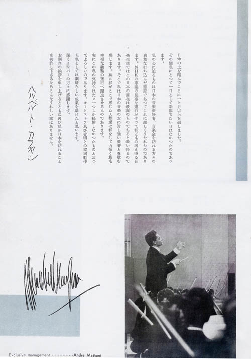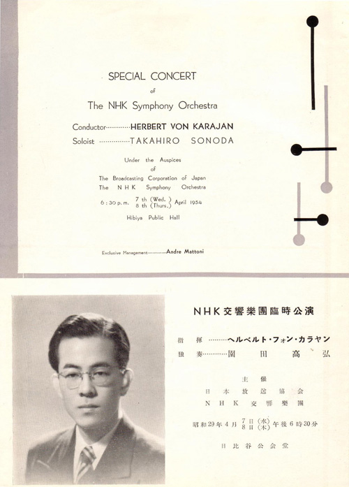 In April and May 1954,Karajan visited Japan for the first time as guest conductor of NHK Symphonic