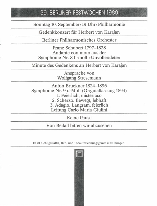 (1)1989.9.10.Berliner Philharmoniker/39.Berliner Festwochen/Gedenkkonzert fuer Karajan