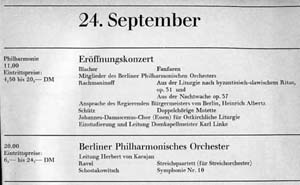 カラヤン、ベルリン・フィルは9.23.,24.の2日間、フィルハーモニーを会場に