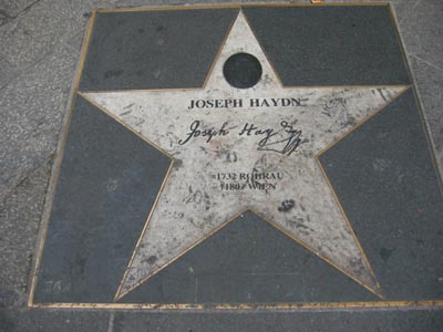 歩道に埋められたハイドンのプレート