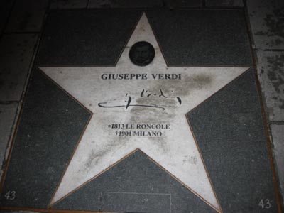 歩道に埋められたヴェルディのプレート
