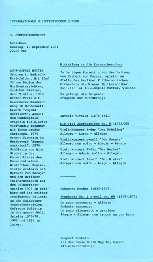 (1)1984.8.31.Wiener Philharmoniker/Festwochen Luzern/8.Symphoniekonzert