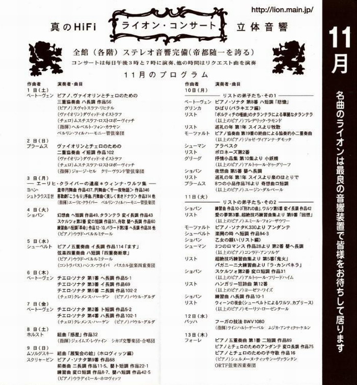 2008年11月のプログラムにはベートーヴェンの三重協奏曲があります。