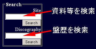 スタイル・シート及びJavaScriptに対応したブラウザでは全ページのコンテンツ右側部分に、どちらにも対応していない場合でもトップ・ページのメニュー下に、Searchというカテゴリで囲まれたテキスト入力欄が2つ表示されているはずです。