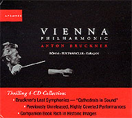 全てウィーン・フィルハーモニー管弦楽団の演奏するブルックナーの交響曲ライヴ音源が収録された4枚組CDで、曲目はベームの7番、フルトヴェングラーの8番、カラヤンの9番です。